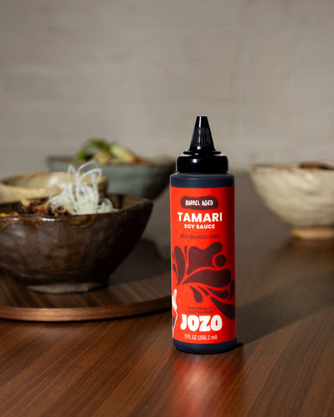 Jozo Tamari Soy Sauce is barrel-aged in cedar casks for 18 months, and brewed at 2X concentration of soybeans. This provides the tamari with exceptional umami flavor, with a nuanced saltiness, the perfect balance.