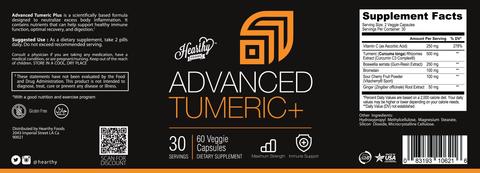 Hearthy Turmeric is a natural spice that had the proven power to reduce or eliminate inflammation, the underlying cause of so many serious health disorders―and that’s just for starters. For over 5,000 years, India’s Ayurvedic medical practitioners have successfully used turmeric as a treatment for a host of painful and debilitating diseases. And for over sixty years, Indian hospital and research centers have studied the amazing effects of turmeric, with hundreds of scientific papers published throughout India, Asia, and Europe. However, only in 2000 did US medical researchers begin to recognize this ancient root’s astounding health benefits. In addition, Hearthy specialty formulated with black pepper which allows for high absorption .