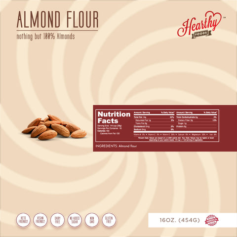 Hearthy Foods' Almond Flour is the tastiest and most delicious blanched almond flour. We use California almonds. So whether you’re looking for a quick breakfast treat, a comfort food entrée, or a show-stopping dessert, Hearthy Almond Flour is your best choice. Use almond flour with our other flours - Apple flour, Banana Flour, and Sweet Potato Flour.