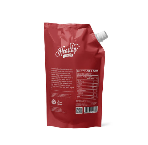 Our natural beef bone broth concentrate is made from only grass-fed and finished Zabihah Halal beef bones, onions, and Pink Sea Salt. There are no spices or herbs in our Natural Beef Broth, which is ideal for sensitive tummies or restricted diet options. Making it the perfect base for creating your hot broth beverage or scooping a spoonful into your favorite cooking dish.