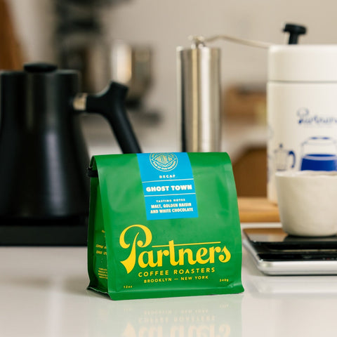 Decaffeinated using mountain water to create a naturally sweet and round coffee, beginning with a subtle malt flavor, enhanced with a creamy body and rich notes of white chocolate and ending with a soft acidity and golden raisin on the finish.