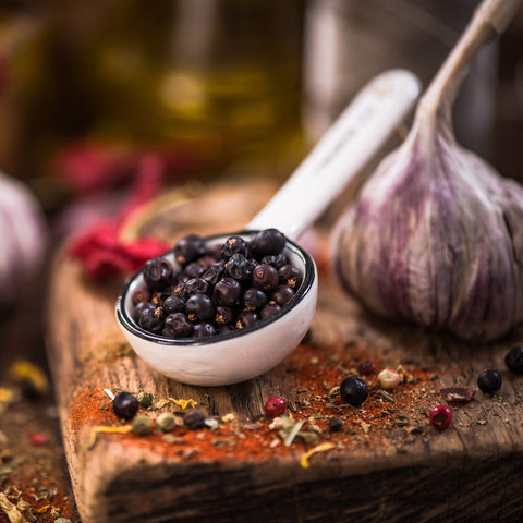 Whole Juniper Berries are an intriguing way to add a bittersweet, pine-like, pepper flavor to a recipe.