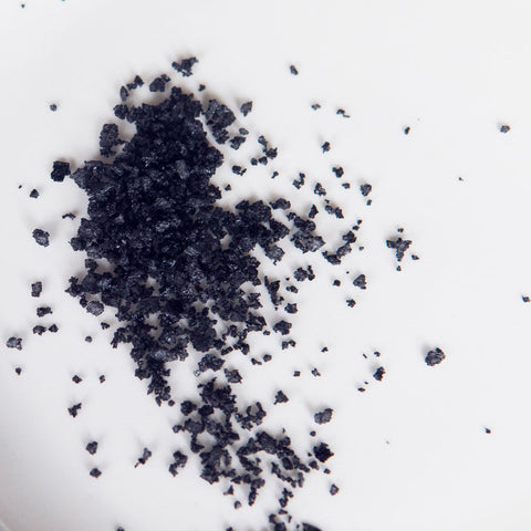 A smooth and visually striking finishing salt. Charcoal doesn't bring a specific flavor but instead rounds the edges, creating a softer, less bitter salt. The black lava color brings great contrast and finish to any dish you put on the table.