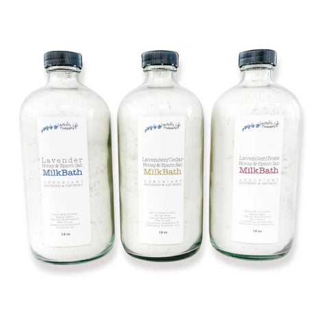 Take your bath to the next therapeutic level with Lavender Life Company’s Milk Baths. Exfoliate, soothe, and hydrate your skin while enhancing firmness and reducing fine lines and wrinkles.