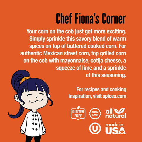SUCCULENT MEXICAN ELOTE SEASONING: When you want authentic, Mexican street vendor flavor, reach for our Street Corn Seasoning. Top off grilled corn with mayonnaise, Cotija cheese, a squeeze of lime and a few shakes from this gluten-free blend for that authentic taste.