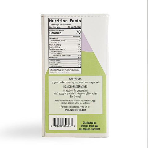 Our best-selling bone broth in a convenient tin. Our chicken bone broth is slow simmered and freeze-dried to ensured maximum nutrition and flavor. Delicious as a sipping broth on its own or in everyday cooking. Just scoop, add hot water, and stir.