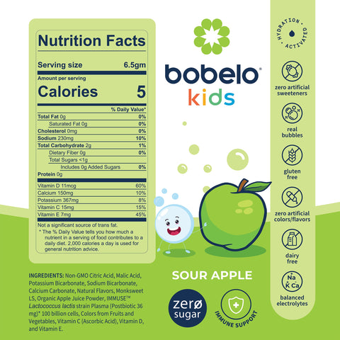 Thrill your little ones with Sour Apple Kids Immune Boost Elixir. Infused with Immuse, an amazing postbiotic, this self-carbonating drink fuses the zing of Sour Apple flavor with natural ingredients for immune support and hydration. Ensure your kids savor a delightful, health-conscious experience with every bubbly sip, making well-being a fun and tasty adventure.