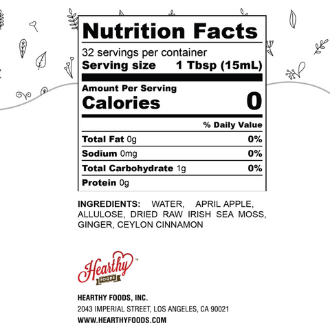 Ingredients: water, apple flour, allulose, dried raw Irish sea moss, ginger, cinnamon